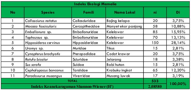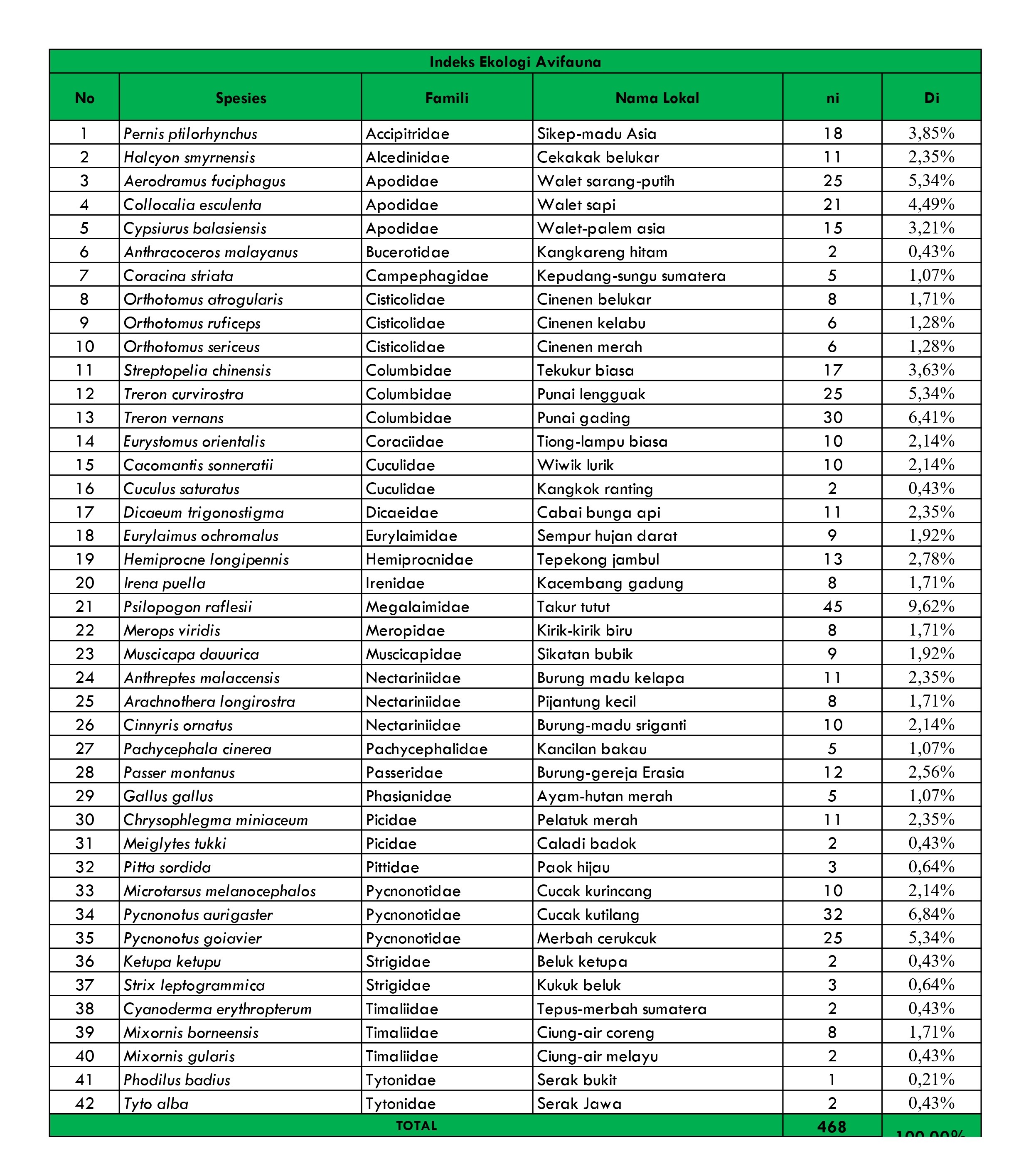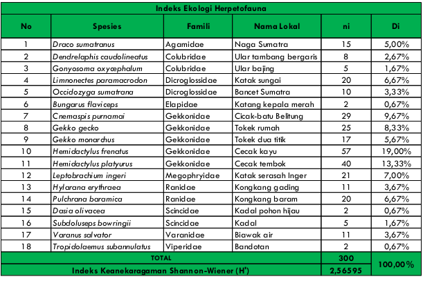 Hasil Monitoring dan Indeks Keanekaragaman Hayati Fauna Area Konservasi Eksternal PLTU Suge Belitung “Geosite Bukit Peramun” Tahun 2025*