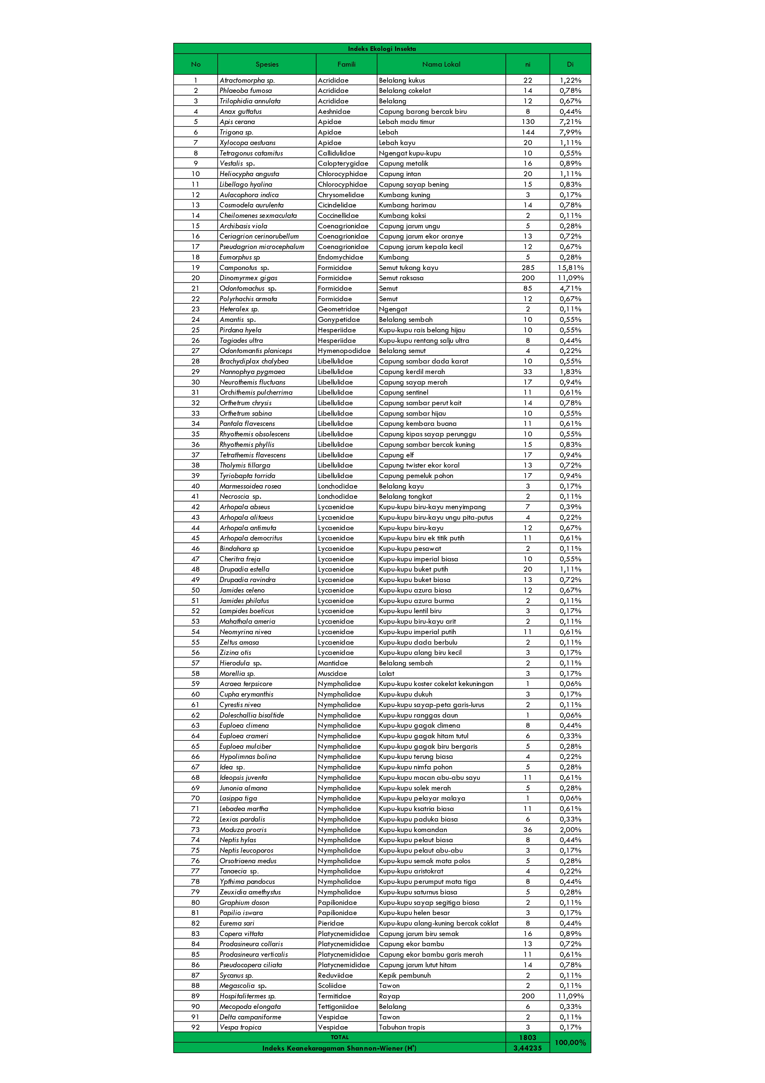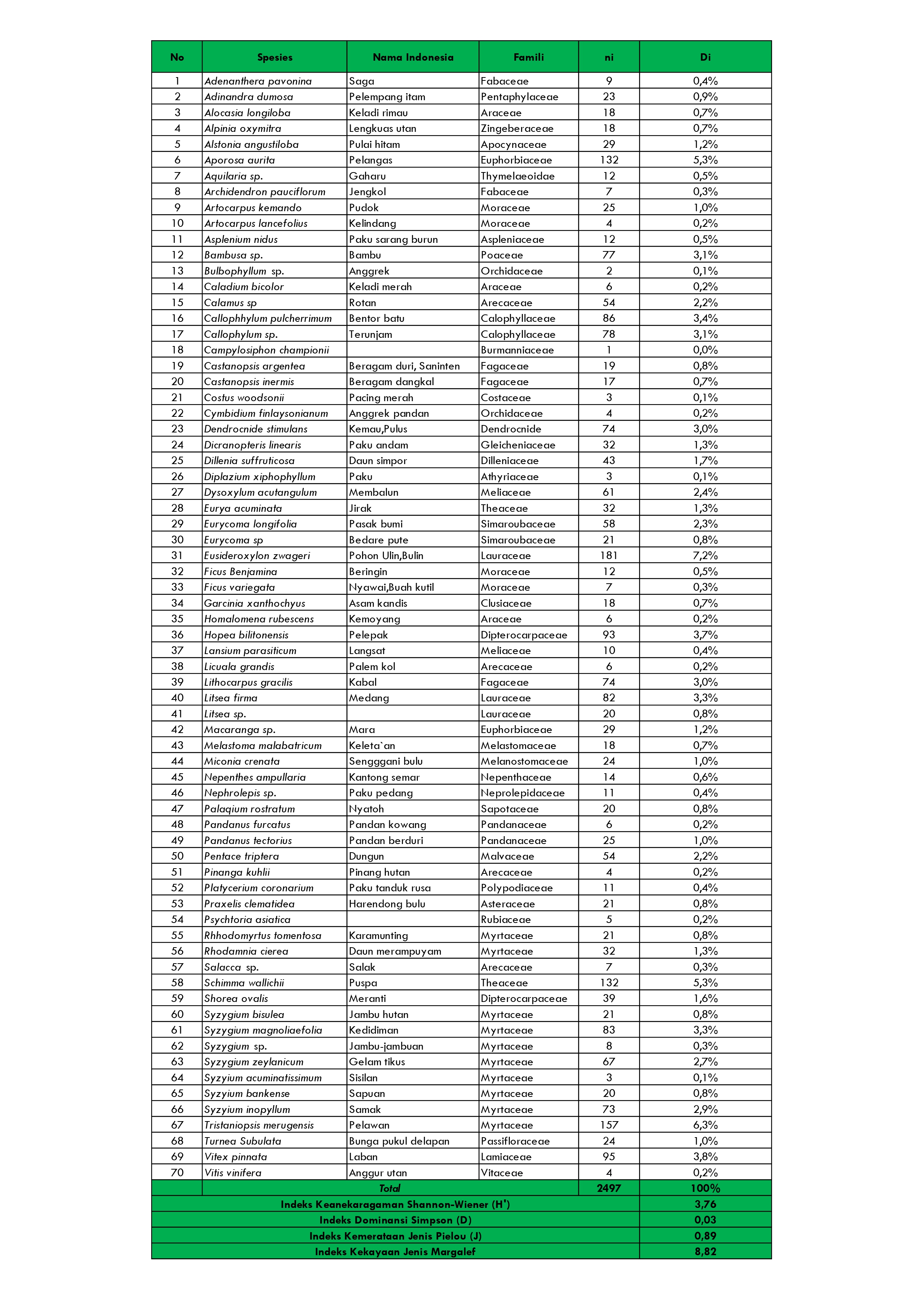 Hasil Monitoring dan Indeks Keanekaragaman Hayati Flora Area Konservasi Eksternal PLTU Suge Belitung “Geosite Bukit Peramun” Tahun 2025*